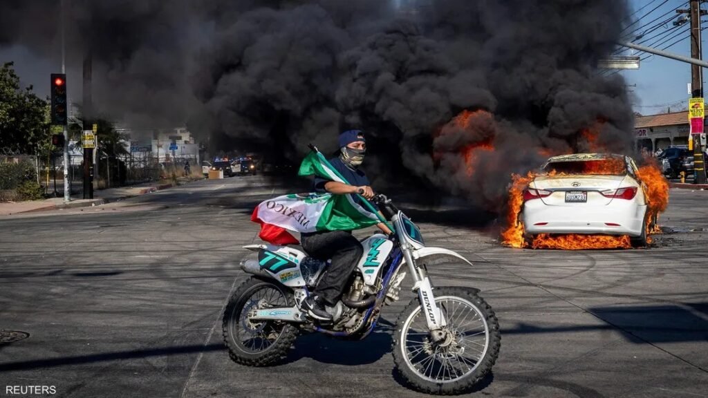 وتستمر منذ الجمعة الاحتجاجات في لوس أنجلوس، التي ندد بها نائب كبير موظفي البيت الأبيض ستيفن ميلر ووصفها بأنها “تمرد” ضد الولايات المتحدة.